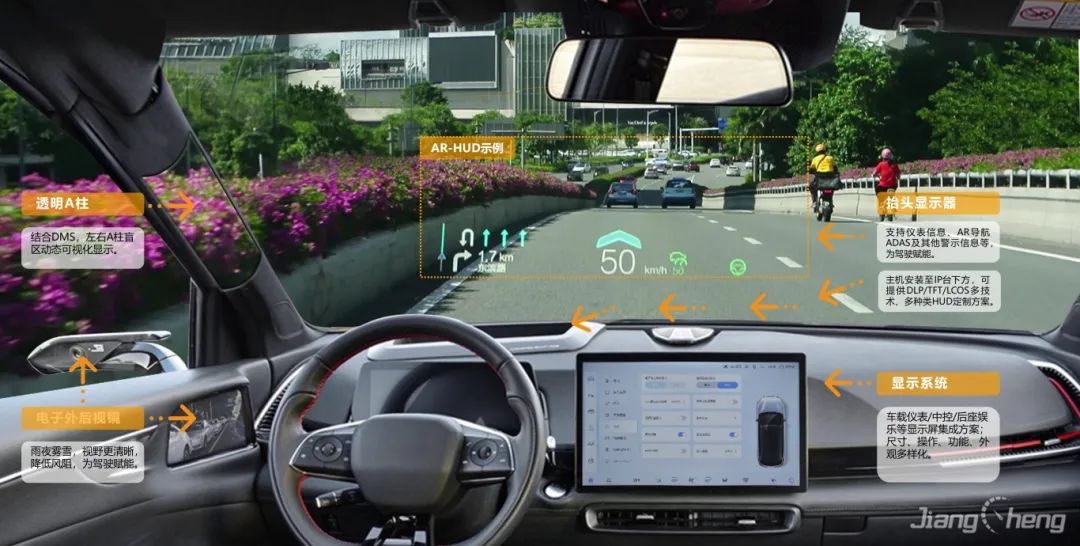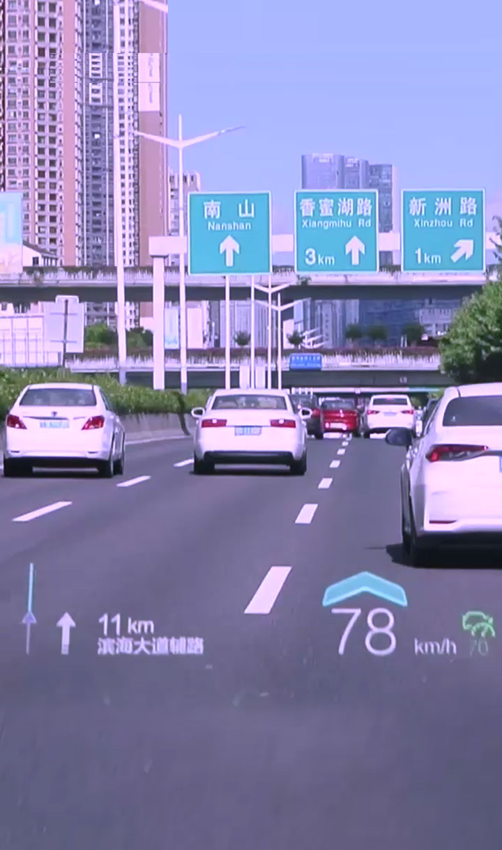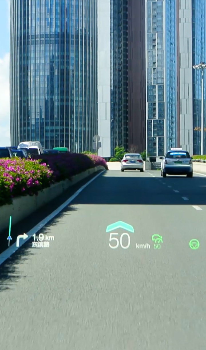 基于復雜變量環(huán)境完成大尺寸、小體積的光機設計,并采用多數據融合算法實現導航、ADAS等輔助駕駛信息在真實路況上的疊加、融合顯示,提升駕駛安全性的同時給予更酷炫、更智能的駕駛體驗。